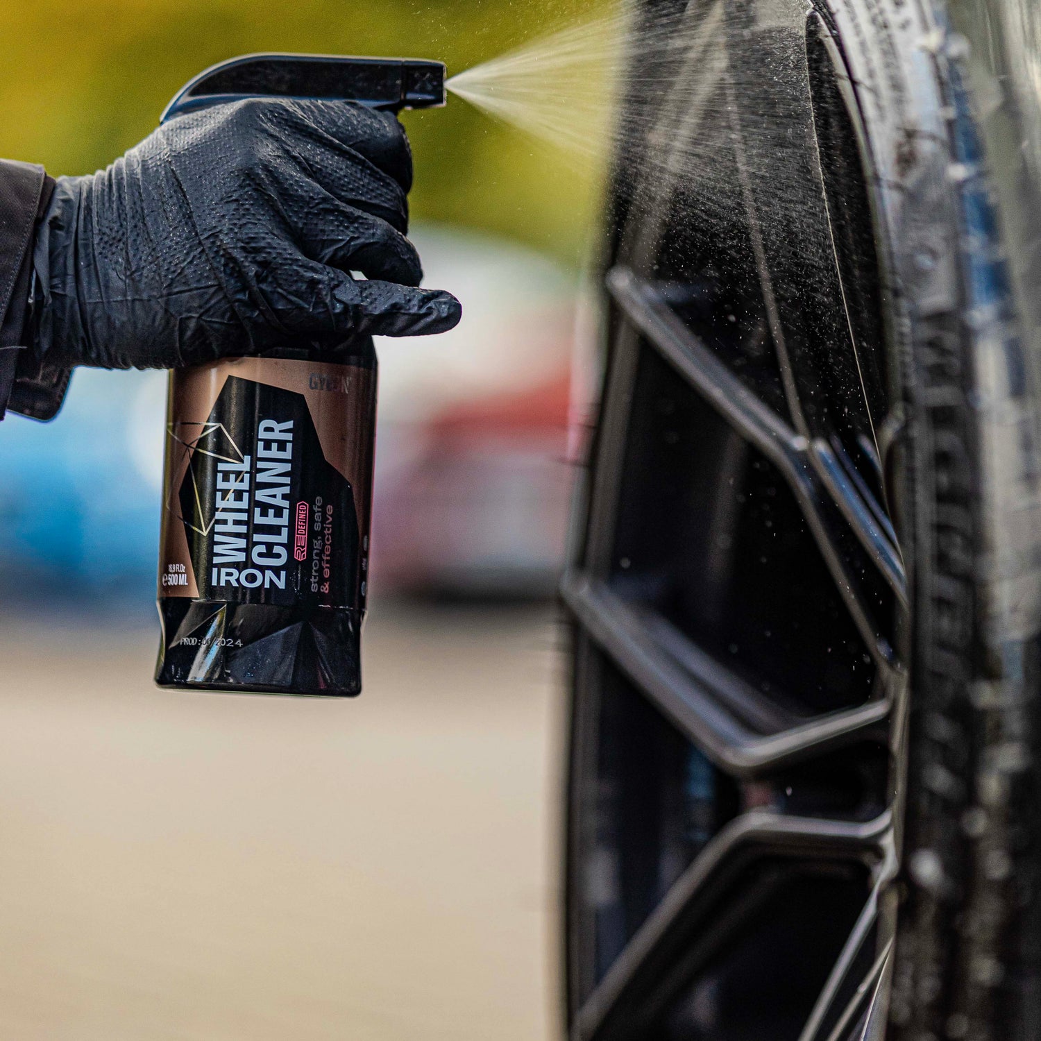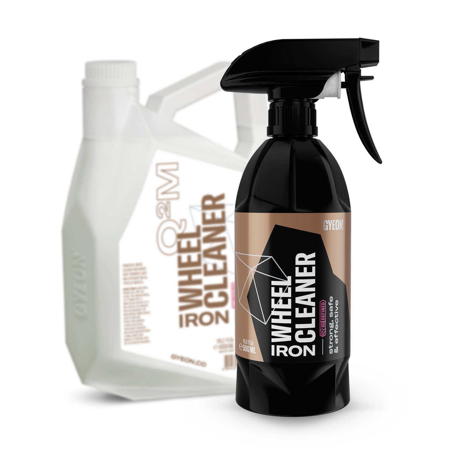 What is GYEON Q²M Iron WheelCleaner? GYEON Q²M Iron WheelCleaner is a reactive wheel cleaner that dissolves brake dust, industrial fallout, and stubborn rim dirt through a chemical reaction – the characteristic color change indicates where iron contamination is present, and the cleaning performance is significantly higher than with normal wheel cleaners.