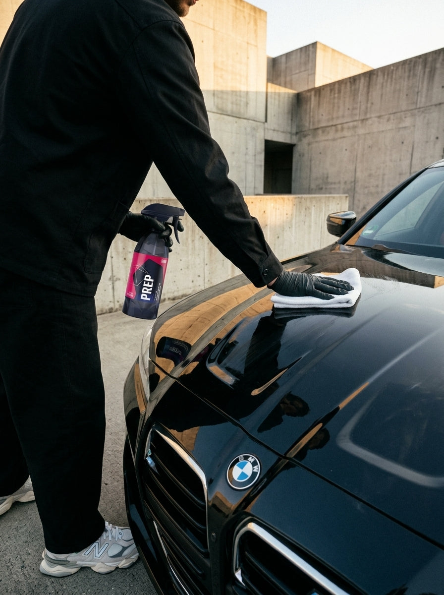 For beginners applying their first ceramic coating: buy Q²M Prep in the 500 ml spray bottle and add a pack of short-pile microfiber towels. Work panel by panel, don't skimp on towels, and check under LED light after each panel.