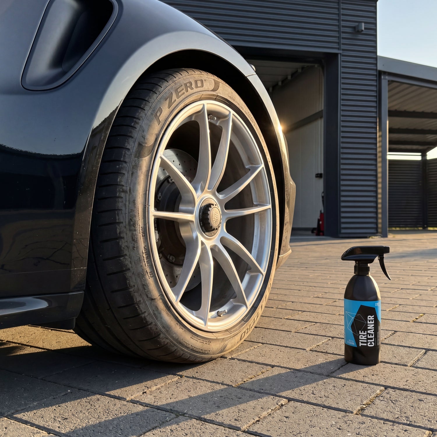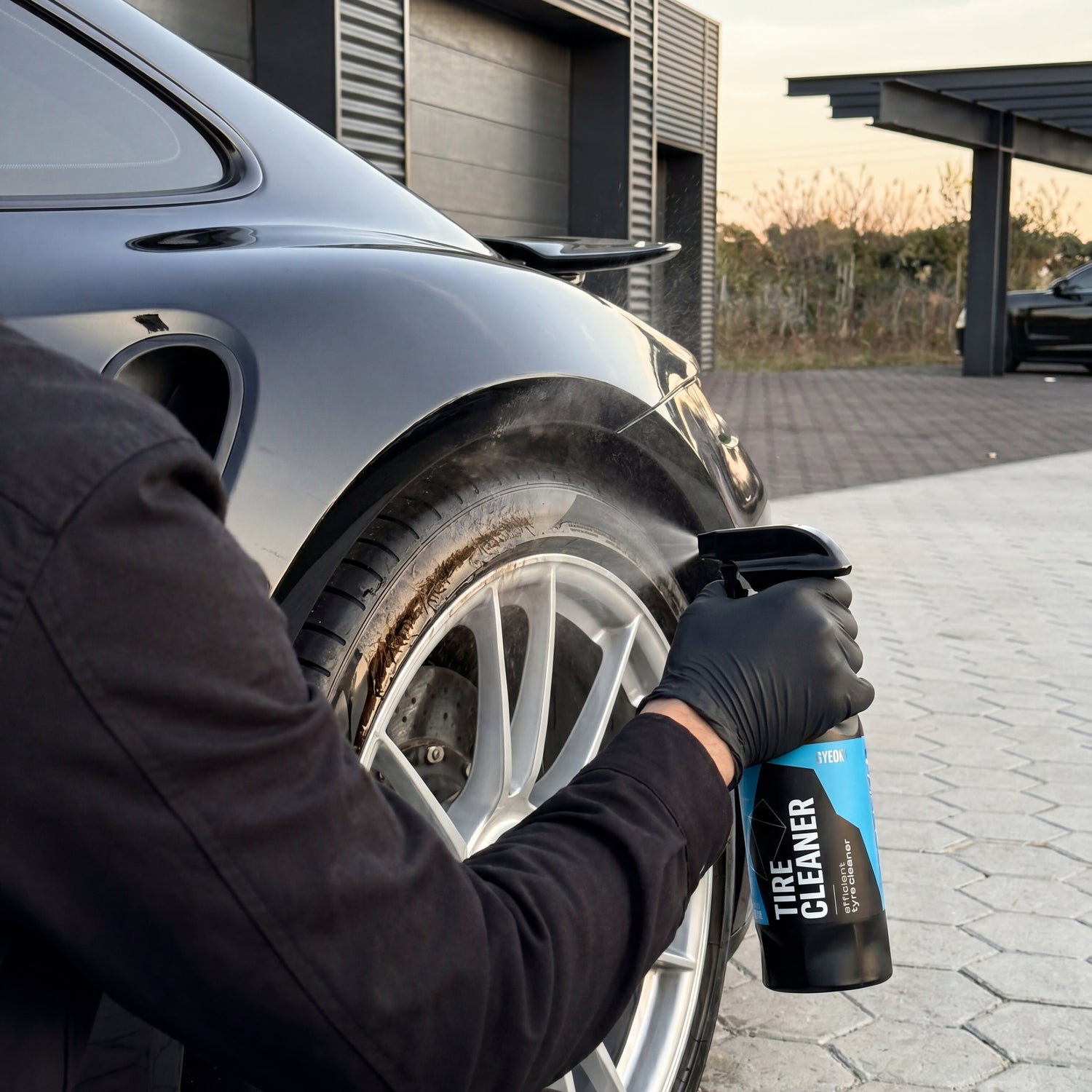 As a complete solution, you combine TireCleaner with a tire care product or a tire coating. The clean sequence is: pre-clean tires with TireCleaner, treat wheels separately with a wheel cleaner, wash car, dry, then apply dressing or coating. For coating, allow 24 hours for curing before the vehicle is back on the road — otherwise you will wash off the uncured layer in the first rain.