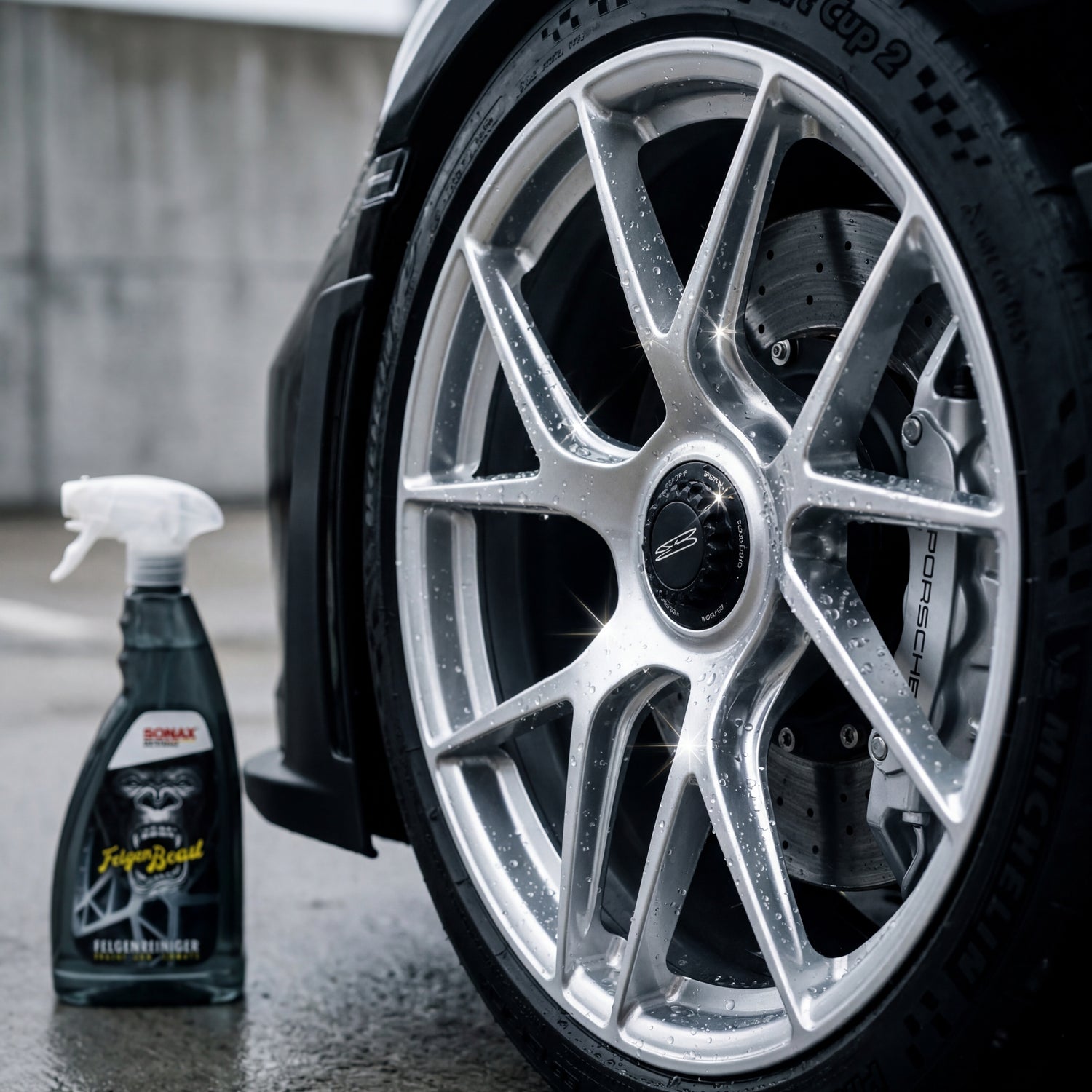 The clear limitations: burnt-in tar and bitumen stains do not react chemically with thioglycolate — for that, you need a solvent-based tar remover. And with extremely burnt-in brake dust on racing brake systems or after months of neglect, a single pass may reach its limits. If you need material compatibility on all surfaces, stick with WheelBeast and plan for two passes. If you want maximum cleaning power on known robust wheels, the more aggressive SONAX PROFILINE Wheel Cleaner is the better choice for individual cases.