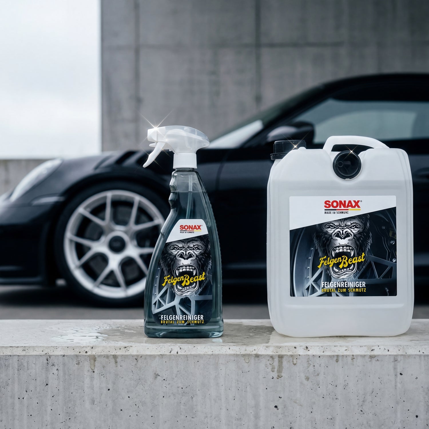 FelgenBeast is the material-friendly all-rounder for regular wheel cleaning every one to three weeks. SONAX PROFILINE Wheel Cleaner is significantly more aggressive and designed for extremely baked-on brake dust and high-performance braking systems. Both are acid-free, but PROFILINE delivers more cleaning power per application.