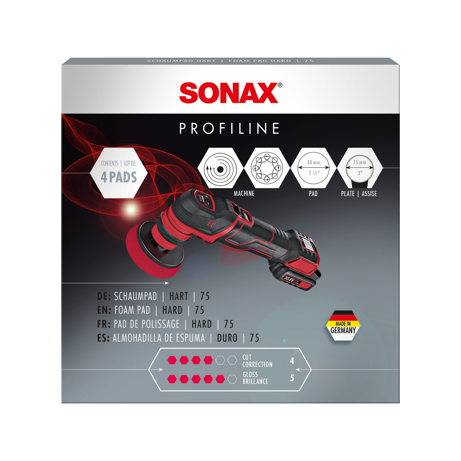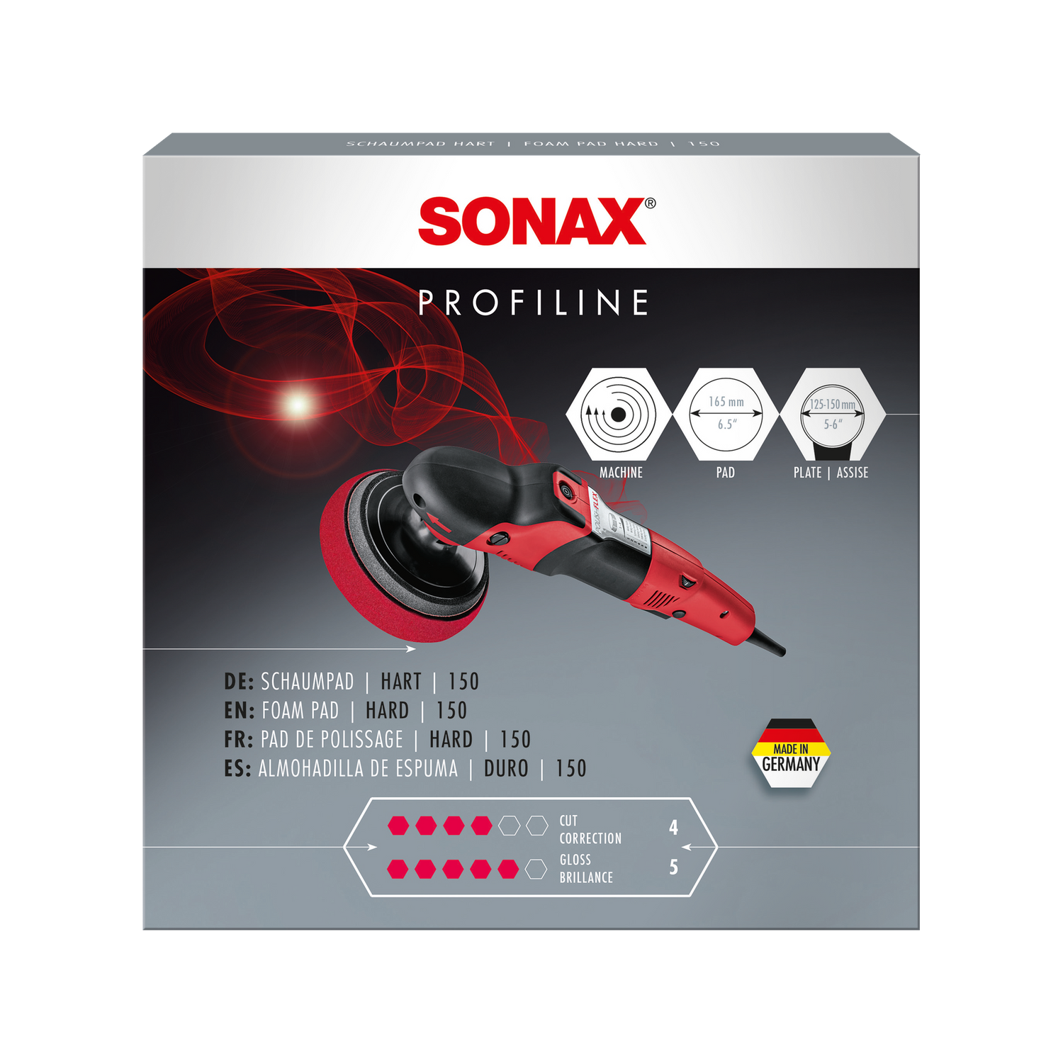 What is a hard polishing pad used for in professional applications? A hard polishing pad like the SONAX PROFILINE FoamPad hard maximizes the cutting performance of the polish used — it removes more paint layers than softer pads, making it the right tool for heavily weathered clear coat, severe holograms, and oxidized surfaces.