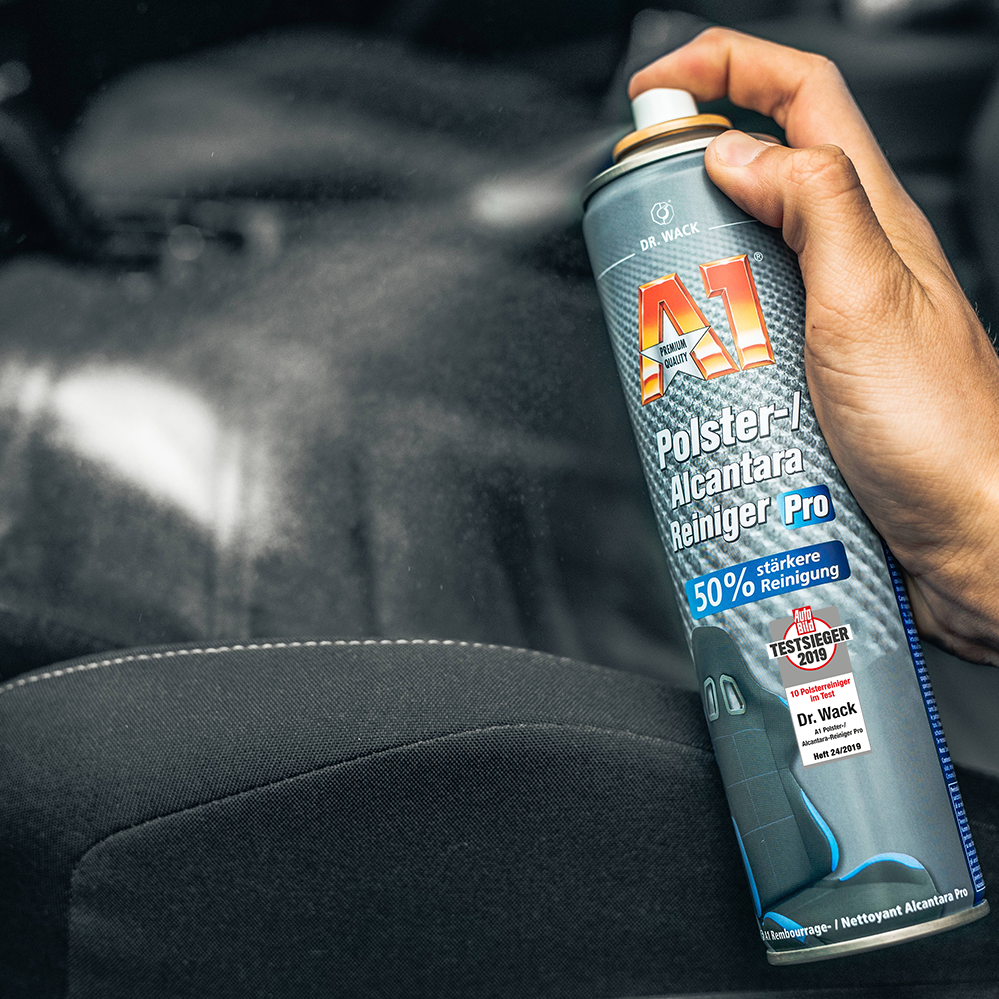 Was leistet der Dr. Wack A1 Polster-/Alcantara Reiniger Pro? – Er entfernt auch starke Flecken gründlich, neutralisiert Gerüche nachhaltig und frischt Farben sichtbar auf – sicher anwendbar auf Stoff, Mikrofaser und Alcantara.