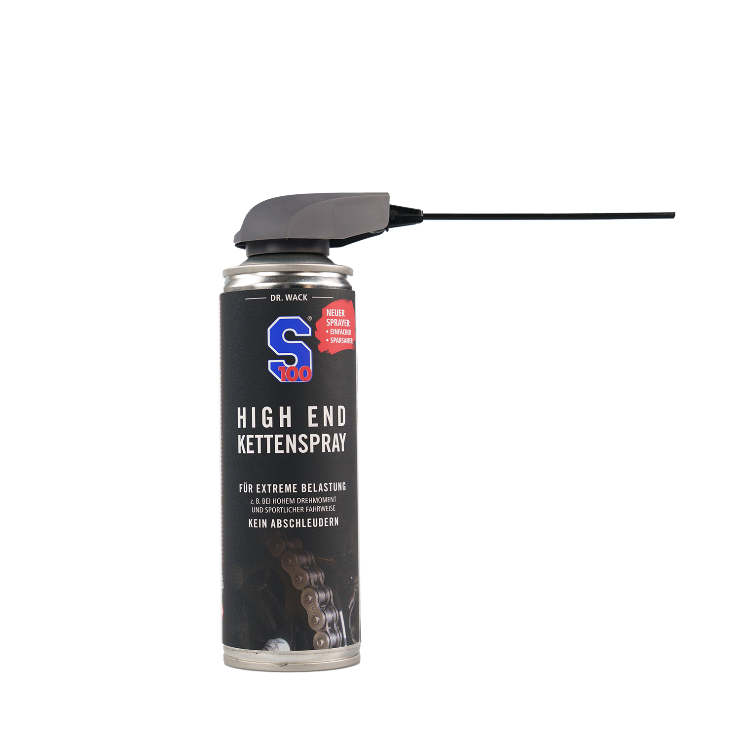 Das Dr. Wack S100 High End Kettenspray liefert maximale Performance selbst unter extremen Belastungen und sportlicher Fahrweise. Dank leistungsstarker Additive und PTFE überzeugt es mit exzellentem Verschleißschutz, hervorragender Schmierleistung, hoher Abwaschbeständigkeit und hervorragendem Korrosionsschutz — dabei bleibt die Kette sauber durch abgeschleuderfreie Formulierung und verlängert deutlich die Lebensdauer des Kettensatzes.
