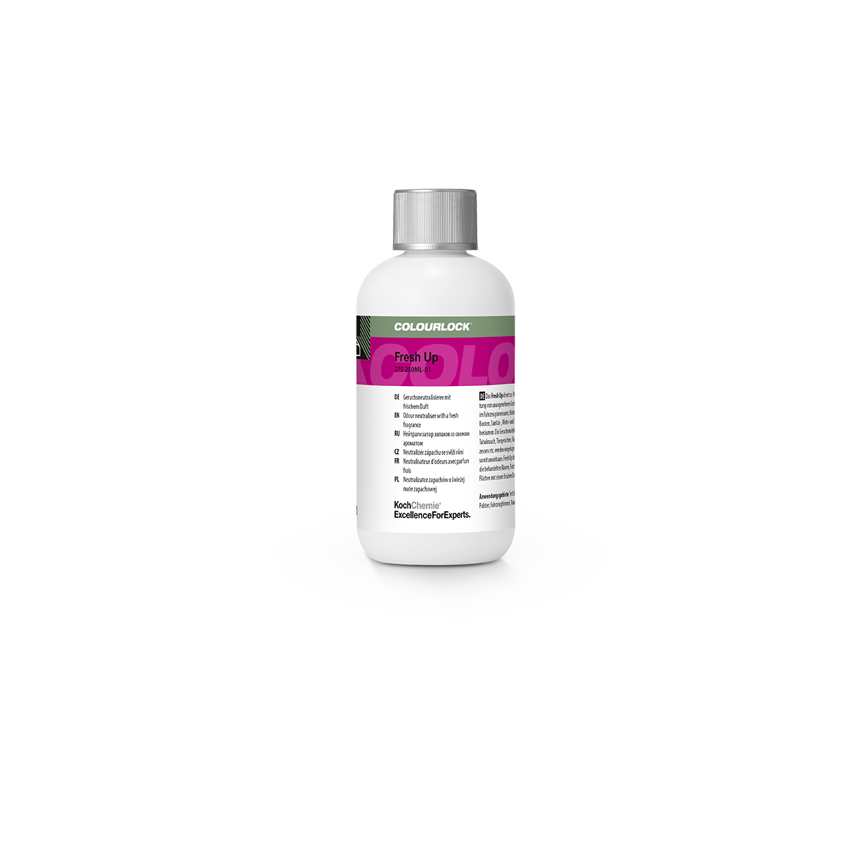 Was macht COLOURLOCK Fresh Up? — Der Geruchsneutralisierer beseitigt störende Gerüche in Leder, Textilien und Interieurflächen, bindet Geruchsmoleküle dauerhaft und hinterlässt einen angenehm frischen, dezenten Duft.