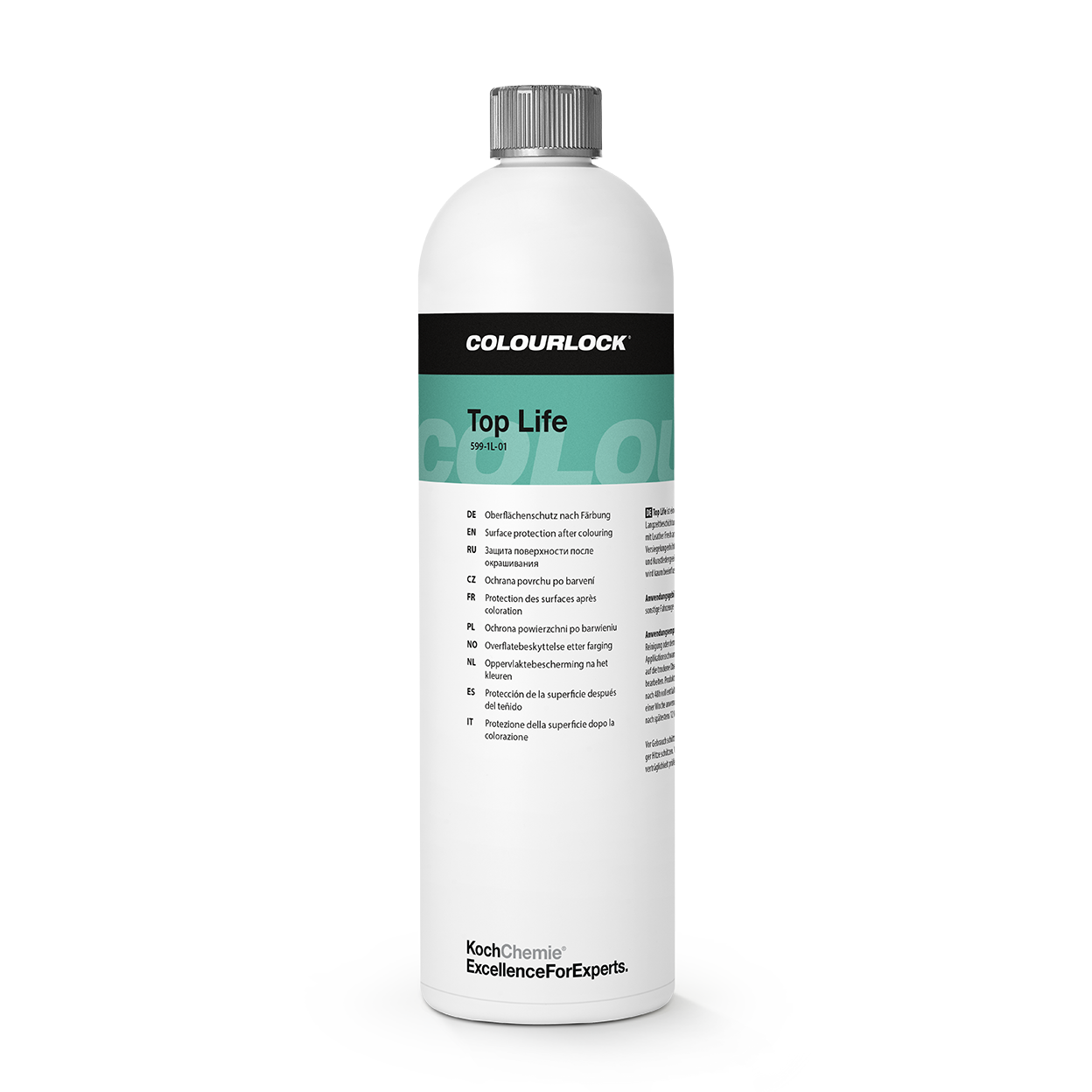 COLOURLOCK Top Life ist ein spezieller Oberflächenschutz, der nach dem Färben oder Auffrischen von Leder aufgetragen wird. Er bildet eine dünne, transparente Schutzschicht, die die neue Farbschicht fixiert und sie vor mechanischem Abrieb, Hautfetten, Schweiß und alltäglicher Beanspruchung schützt. Besonders bei frisch gefärbtem Leder sorgt Top Life dafür, dass das Ergebnis stabil bleibt, gleichmäßig altert und seine Optik länger bewahrt.