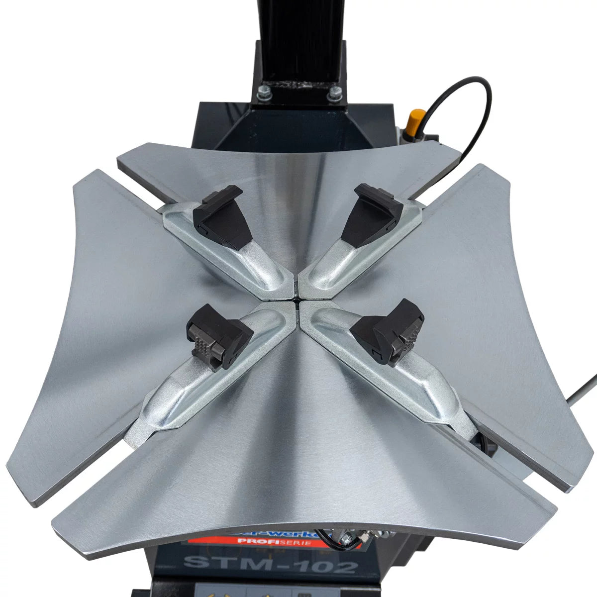 Die Reifenmontiermaschine STM-102 bietet zahlreiche Funktionen, die eine einfache und sichere Montage gewährleisten. Der seitlich schwenkbare Montagearm und die Excenter-Verspannung des Montagekopfes ermöglichen eine schnelle Justierung. Die Spannklauen aus hochfestem Stahl sorgen für ein sicheres Spannen der Felge von innen und außen, während der selbstzentrierende Spannteller für Felgengrößen bis 24" geeignet ist. Dies macht die STM-102 zur idealen Wahl für verschiedene Fahrzeugtypen. Die STM-102 ist mit einem Montagekopf ausgestattet, der über Aufnahmen für Kunststoffschutzelemente verfügt, um die Felge während des Montierens zu schützen. Dies macht sie besonders geeignet für hochwertige und empfindliche Felgen​.